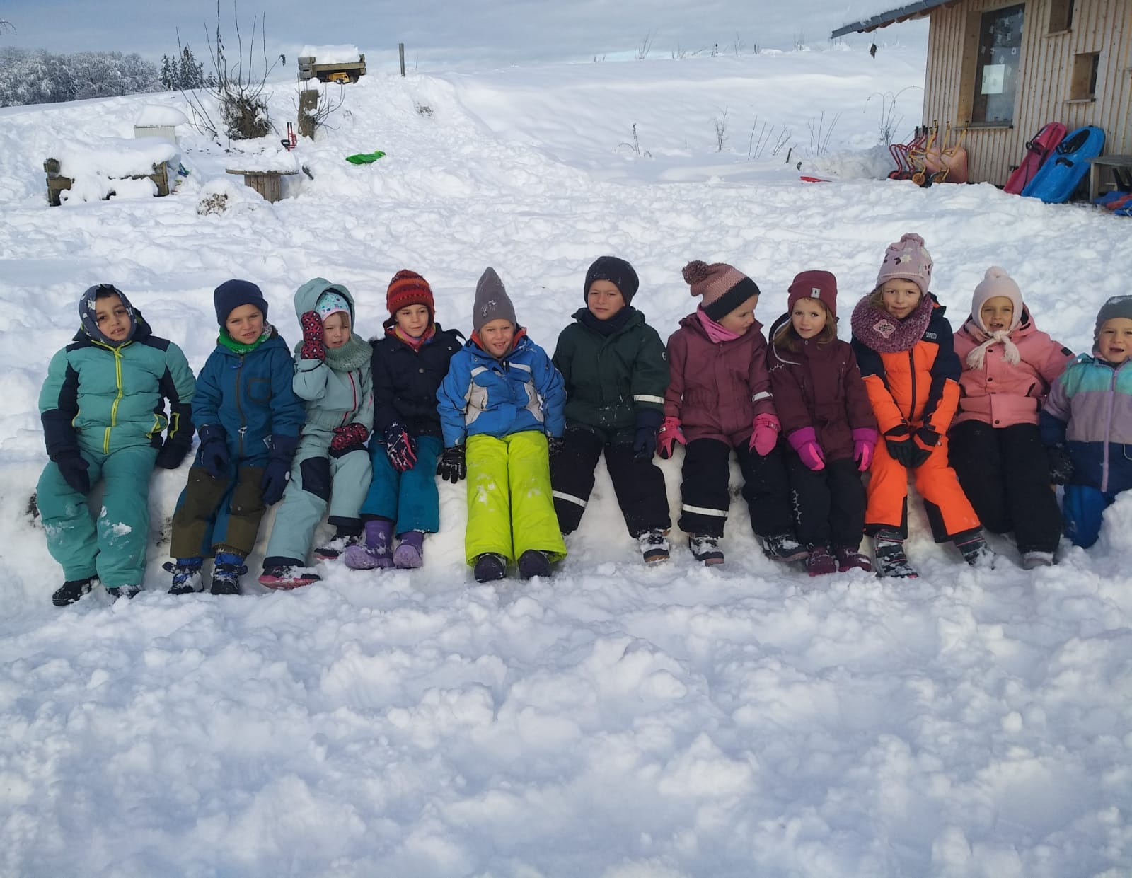 Kinder gut gelaunt und natürlich dick eingepackt auf unseren